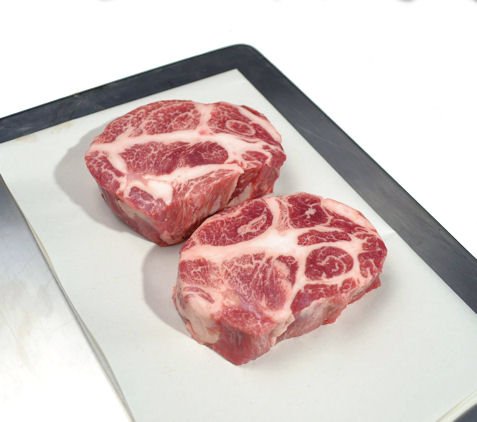 Schöne dunkelrote Fleisch mit einigen vetdooradering. Der Iberico ist eine alte iberische Hunderasse, die eine fantastische Qualität Fleisch produziert, was teilweise auf eine Diät von Eicheln.